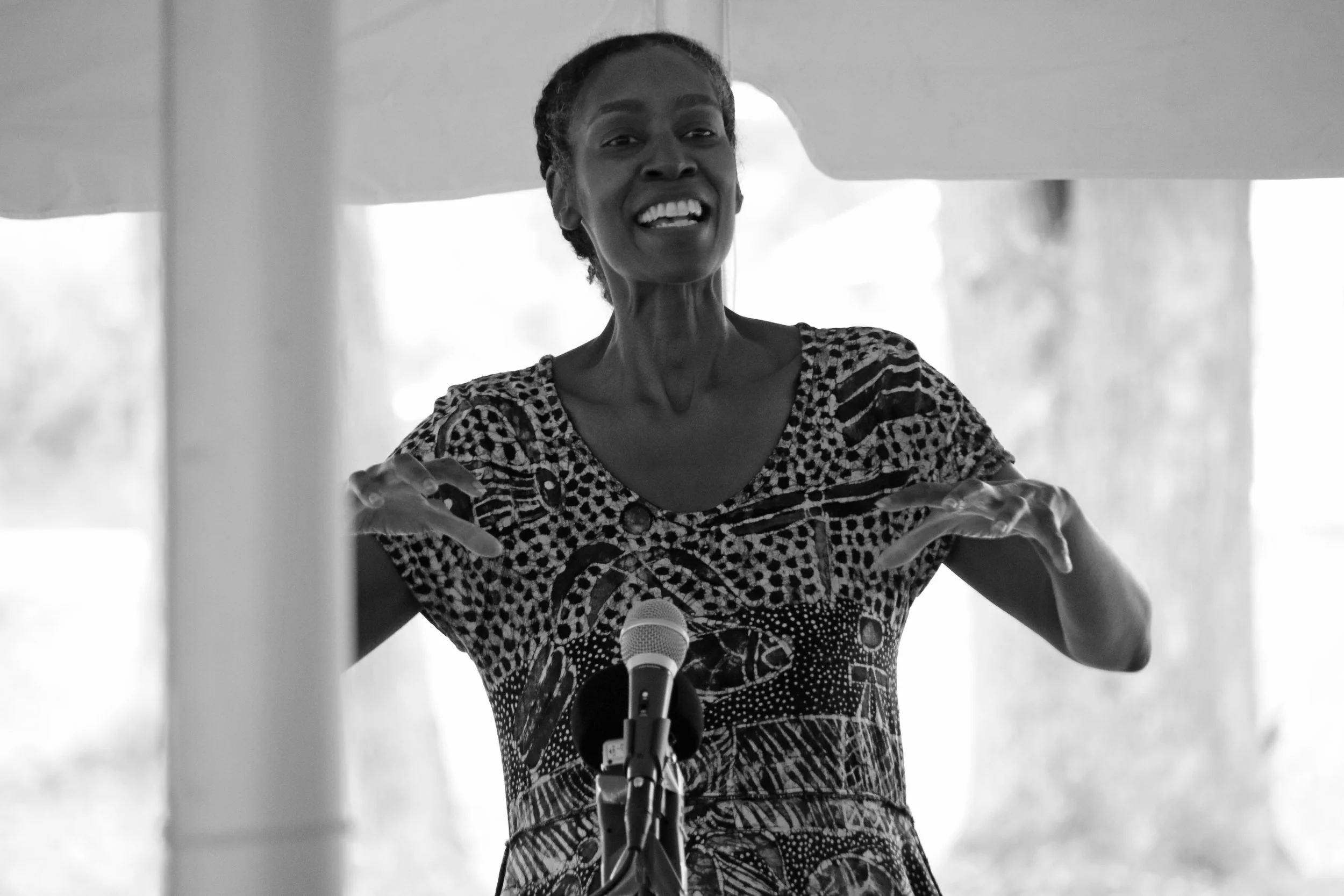 No ceremony honoring African Americans would be complete without storytelling in the tradition. Following Diane Macklin’s captivating depiction of Zora Neal Hurston at the Victorian Chautauqua in July, she was commissioned to return for the dedication ceremony. Diane crafted a central theme, "We are together," engaging the audience from start to finish. As she called out, "We are," the audience called back, "together," punctuating Diane's underlying message.