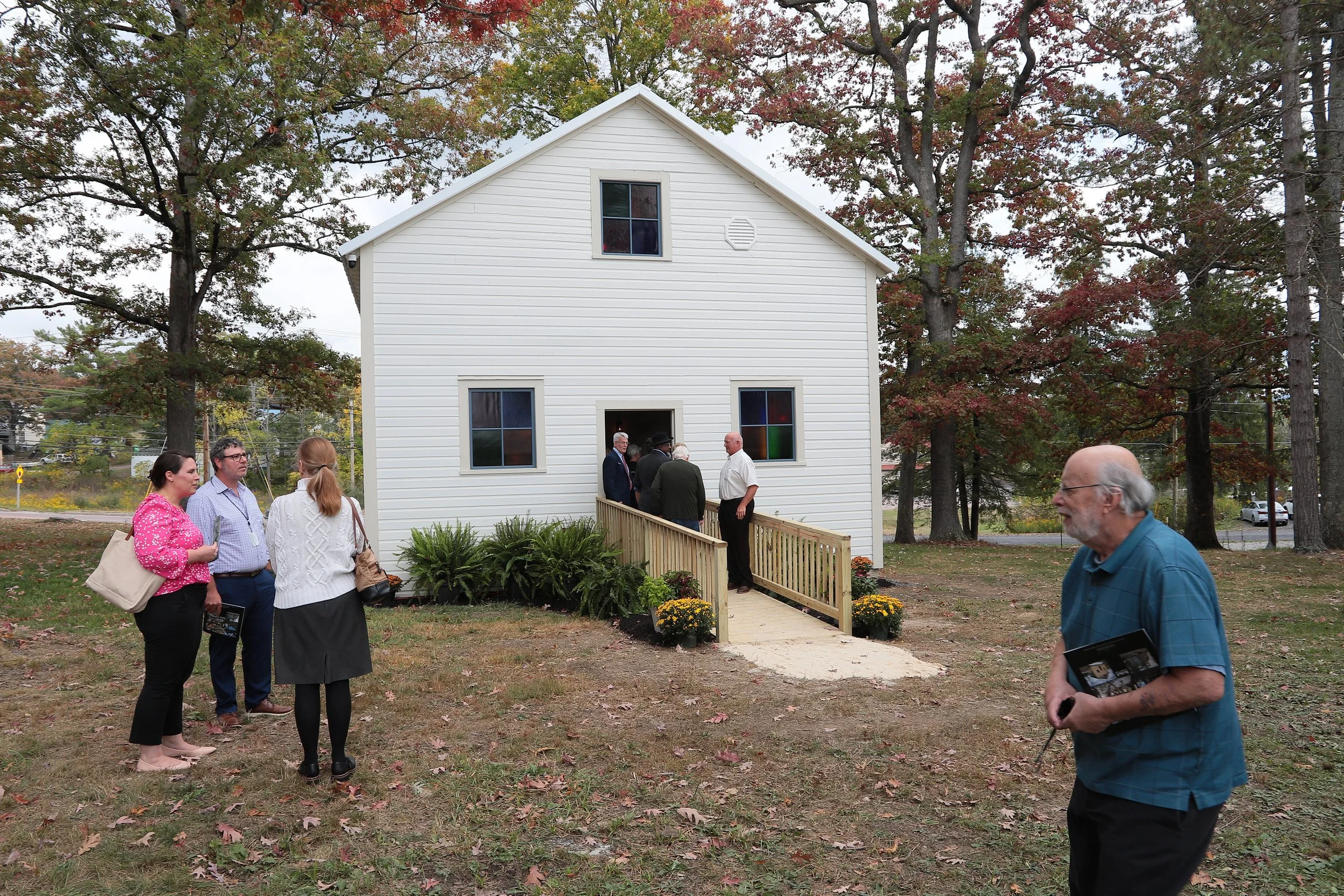 She praised Mayor Sincell, who oversaw the project, and brothers Jeremy and Jason Martin, who deconstructed, relocated, and rebuilt the church on the ground where it stands today. Jay Corvan was commended as the architect who took meticulous care to resurrect the building's missing historical features, including the location of the front door, which had long been missing, and the colored glass that harkens a holy place.
