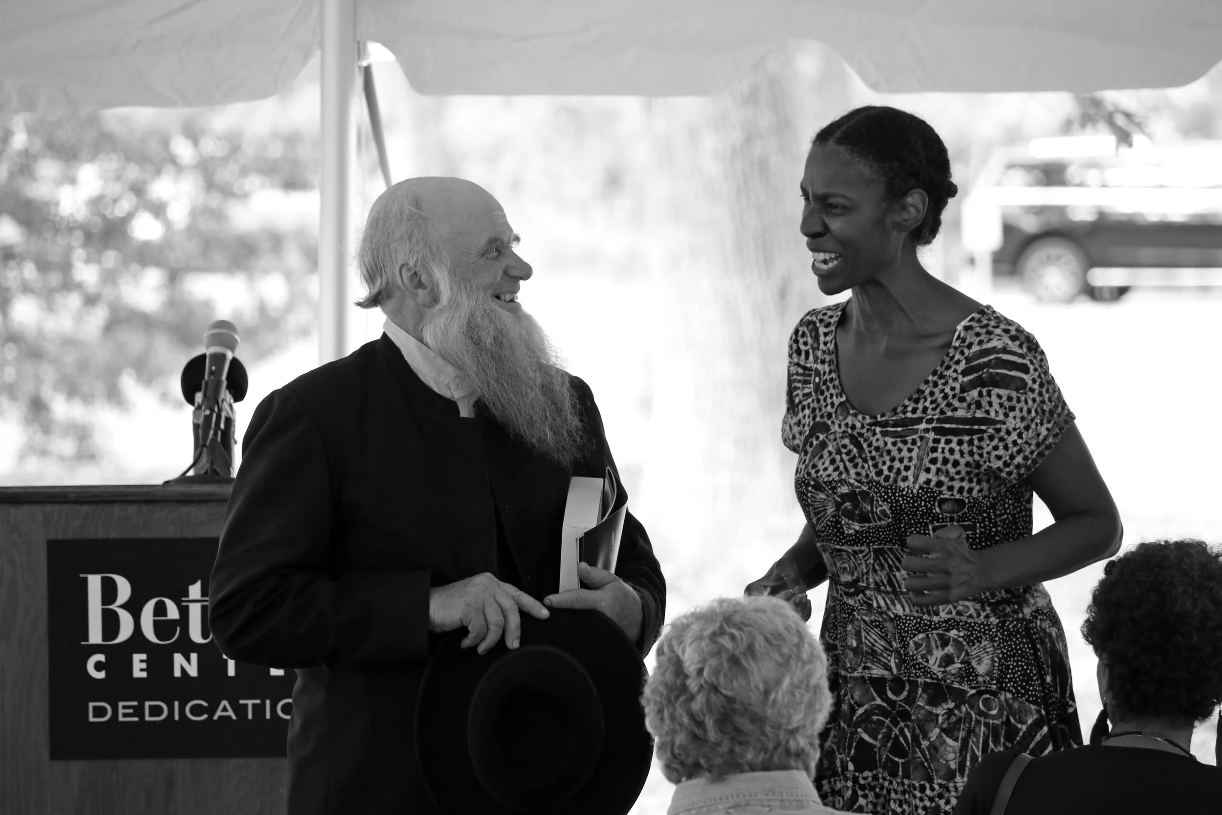 Samuel Yoder, previous owner of the A.M.E. Church, and storyteller Diane Macklin meet for the first time.